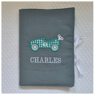 Il est réalisé comme un protège cahier dans le tissu de votre choix aux dimensions du carnet de santé standard français.