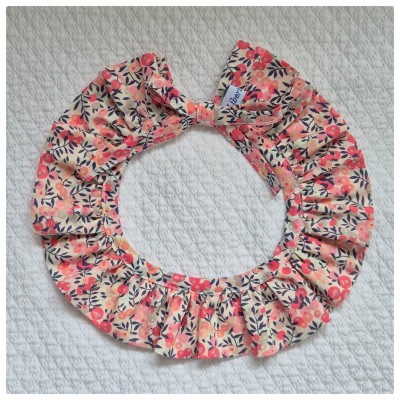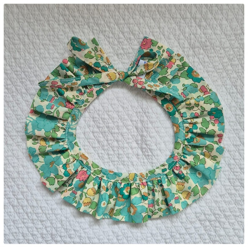 Petit col amovible en tissu Liberty. Ce petit col peut se porter sur un pull ou une combinaison pour donner un peu de chic à la tenue. Il se ferme pas des petits cordons blancs en satin.