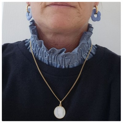 Col victorien amovible en tissu double gaze ou autre. Ce col peut se porter sous ou sur un pull pour donner un peu de chic à votre tenue. Il est monté sur un élastique et s'enfile par la tête.