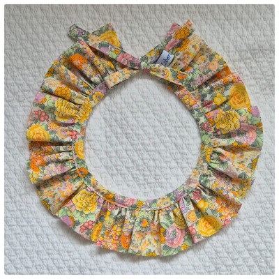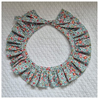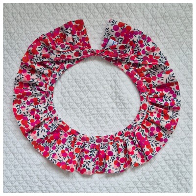 Col amovible en tissu Liberty pouvant être porté sur un pull pour donner un peu de chic à la tenue. Il se ferme pas des cordons Liberty.